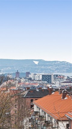 Lys 2-roms utsiktsleilighet med tilbaketrukket beliggenhet. Gjennomgående. Separat kjøkken. Fyring/vv og fiber inkl.