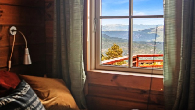 Hytta ligger flott til i terrenget, med svært gode solforhold. Den romslige terrassen gir flere lune soner – perfekt for både rolige morgenstunder og sosiale kvelder rundt bålpanna. Herfra nytes en storslått utsikt over Vrådal og omkringliggende fjellkjeder – et vakkert skue året rundt.
