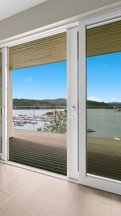 Ny fritidsleilighet med fantastisk sjøutsikt, stor terrasse, båtplass og garasjeplass.