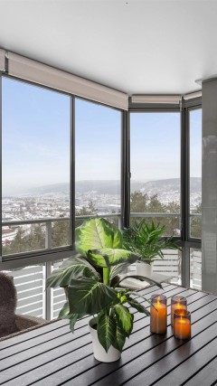 • Innglasset balkong på ca. 13 kvm med utsikt mot skogen og Drammen sentrum