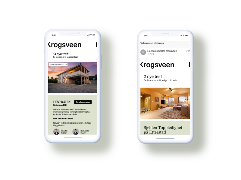 Vi har over en halv million besøk per måned på våre boliger på krogsveen.no. Her kan interessenter melde seg på visning, følge budrunden eller ta kontakt for spørsmål.