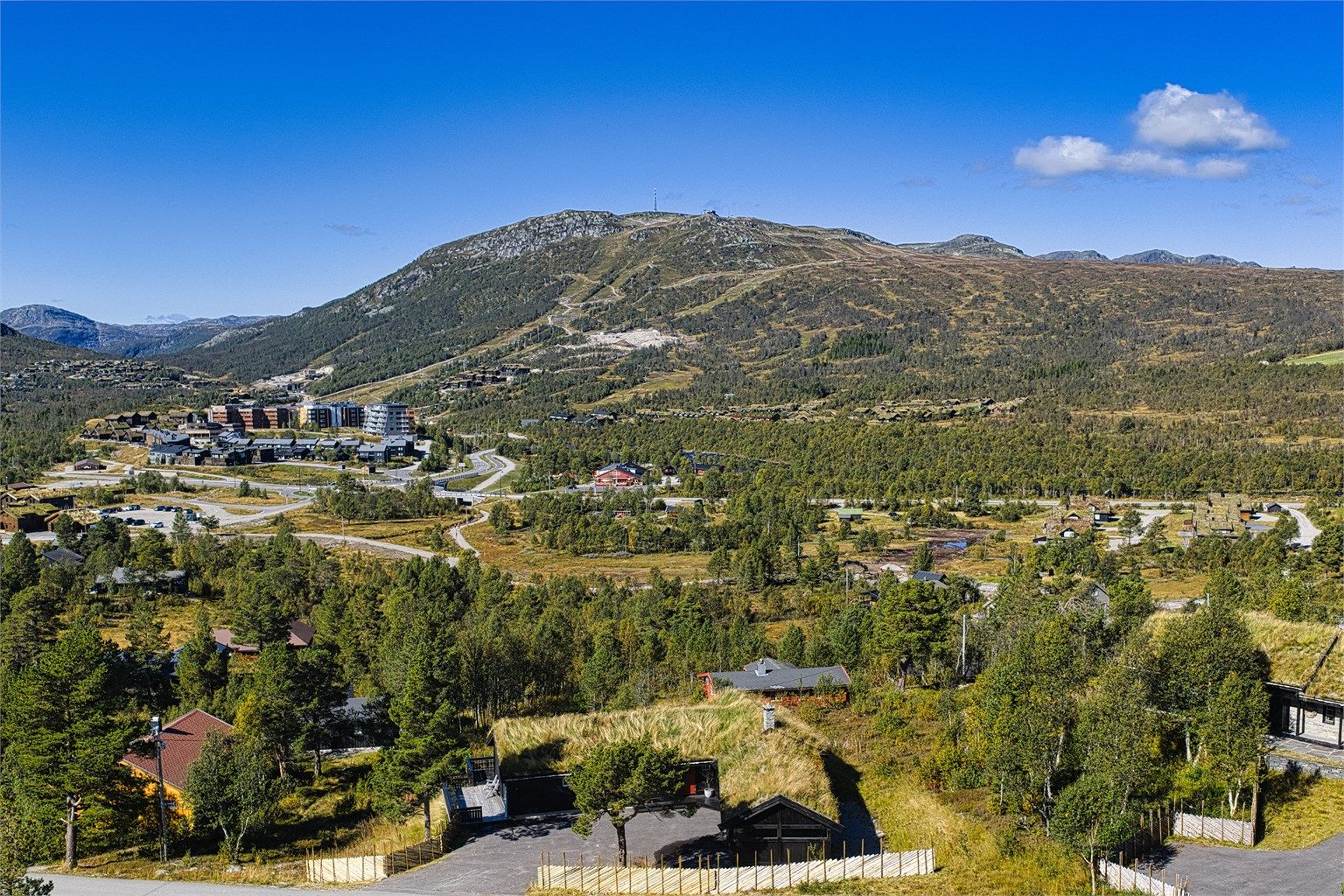 Tiltalende hytte av god kvalitet på meget flott og solrik utsiktstomt! Hytta ligger midt i smørøyet på Hovdens solside med vid utsikt ut over dalen og fjellene i vest.