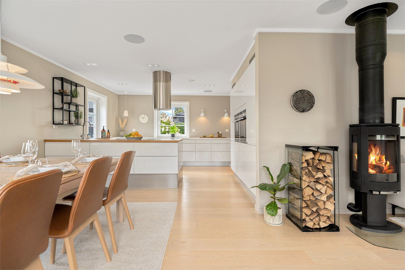 Ellers byr boligen på god planløsning, lekkert kjøkken, stor stue og spisestue, 5 soverom, eget vaskerom, to romslige bad og et herlig uteområde!