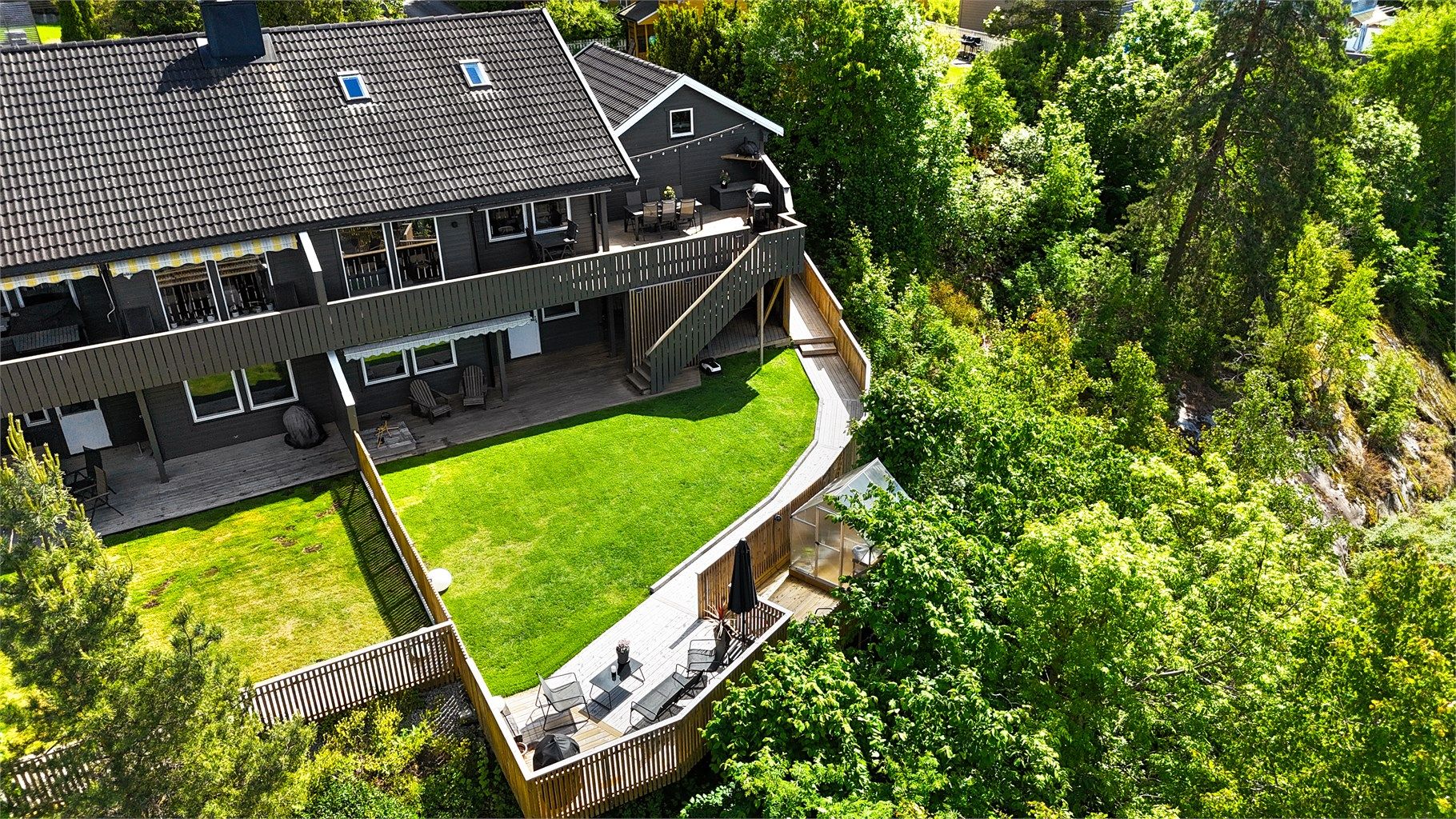 Gode solforhold med morgensol på fremsiden og sen kveldssol i hagen og på terrassen.
