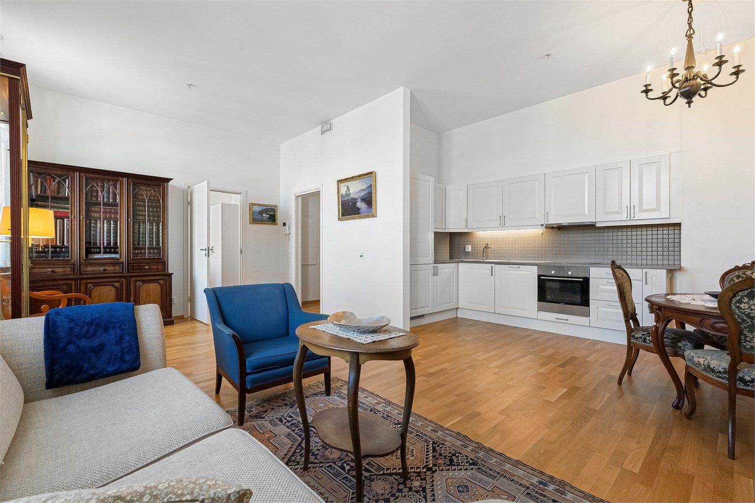 Denne lyse og praktiske leiligheten ligger i byggets 3. etasje og byr på en funksjonell planløsning med entré, baderom, soverom og en åpen stue- og kjøkkenløsning. Leiligheten er oppvarmet med vannbåren gulvvarme tilkoblet varmesentral, som gir en jevn og behagelig temperatur i alle rom.