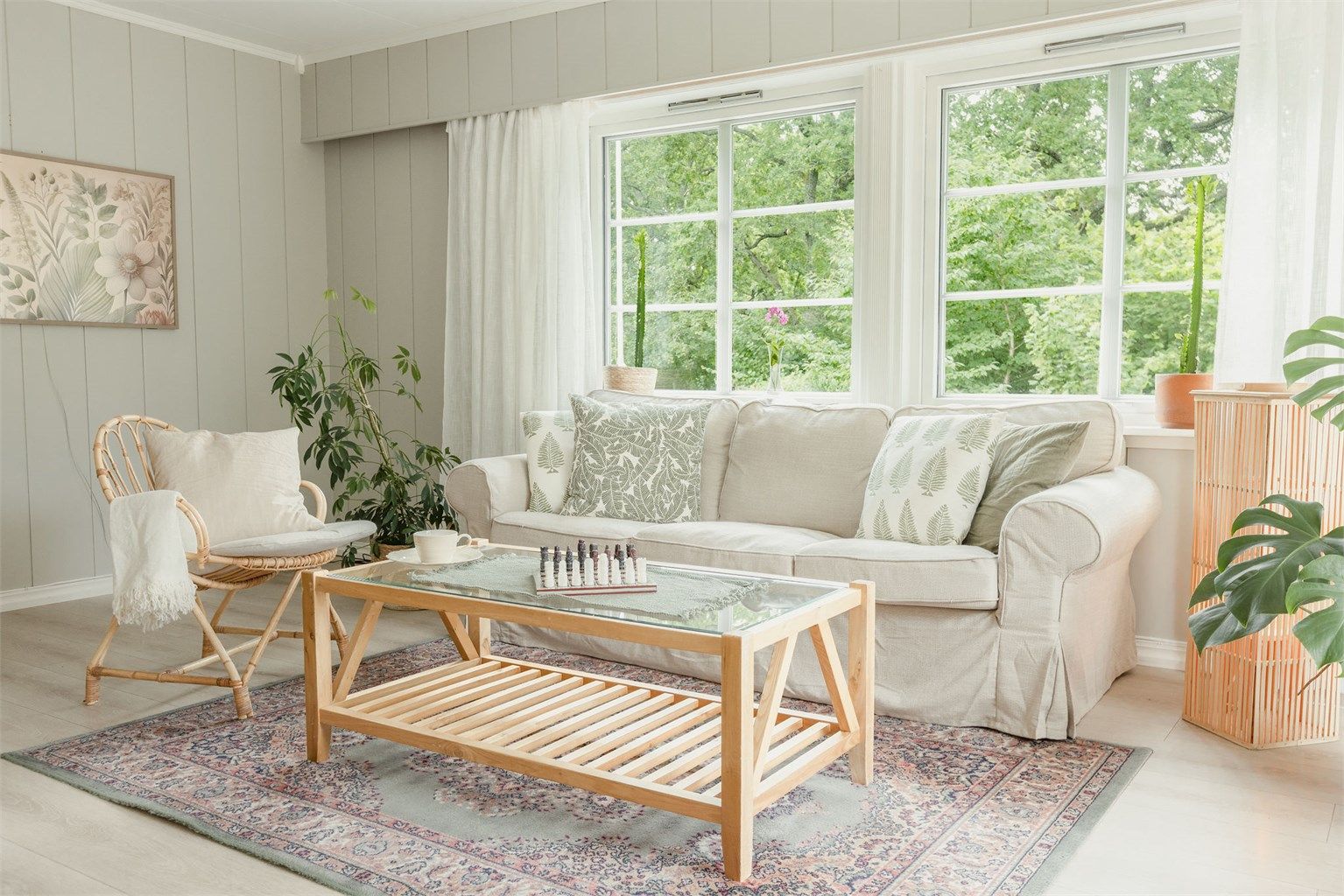 En velholdt og svært sjarmerende enebolig over 3 plan med en naturskjønn beliggenhet ved Tjøme golfbane. Huset har gjennomgått oppgradering siden 2016 og fremstår med en gjennomgående normalt god standard. Hele boligen er avholdt i smakfulle farge- og materialvalg i god harmoni med husets opprinnelse.