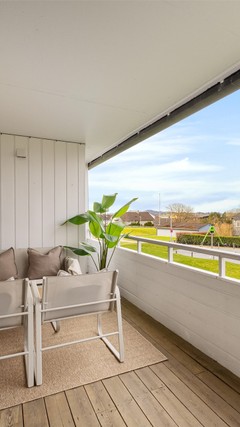 Fra stue er det utgang til solrik balkong på 11 kvm, med rikelig plass til hagemøbler.