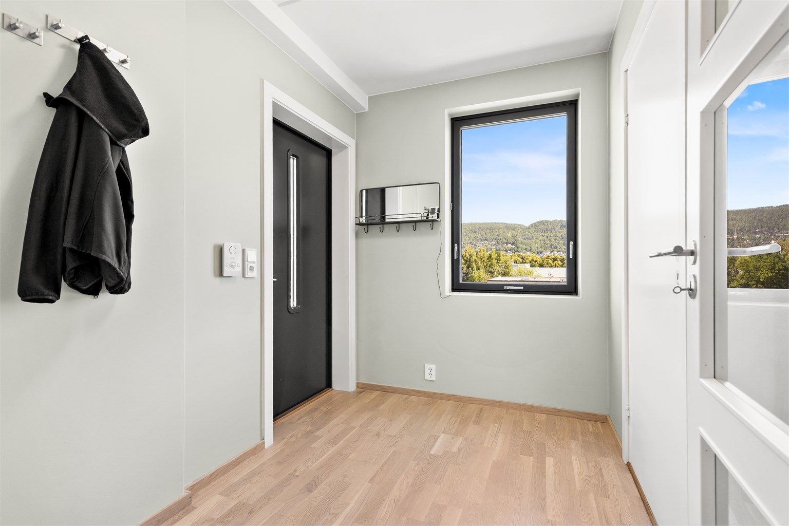Adkomst til leiligheten via heis og eget inngangsparti fra svalgang