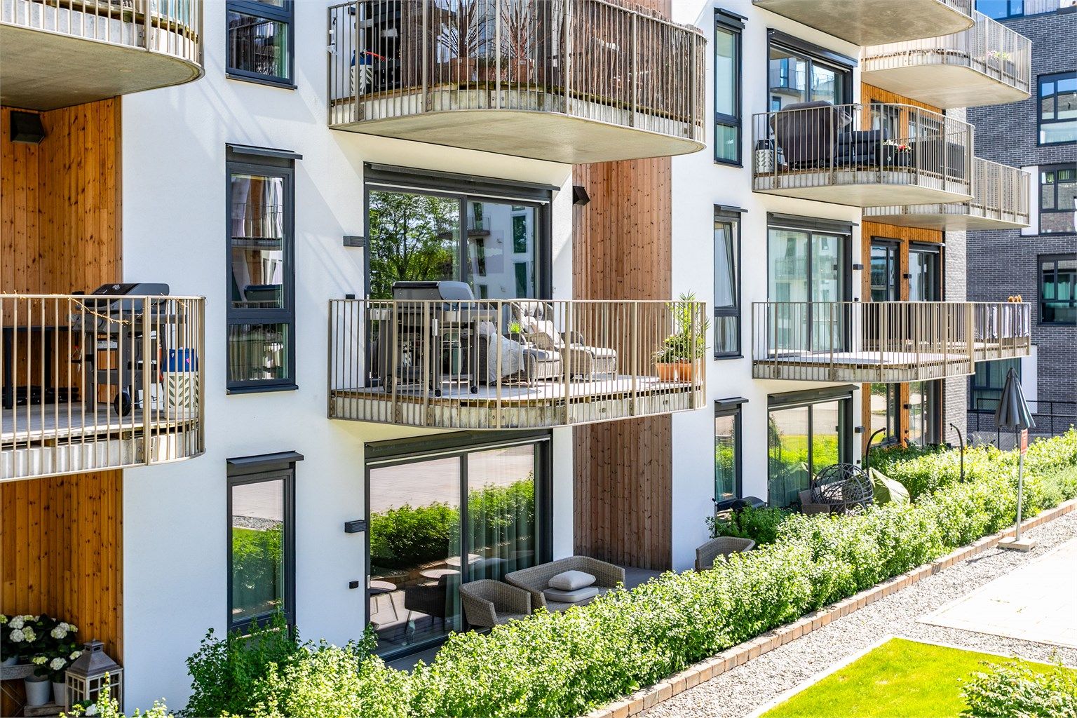 Nord-vestlig orientert balkong med utsyn over sameiets fine gårdsrom