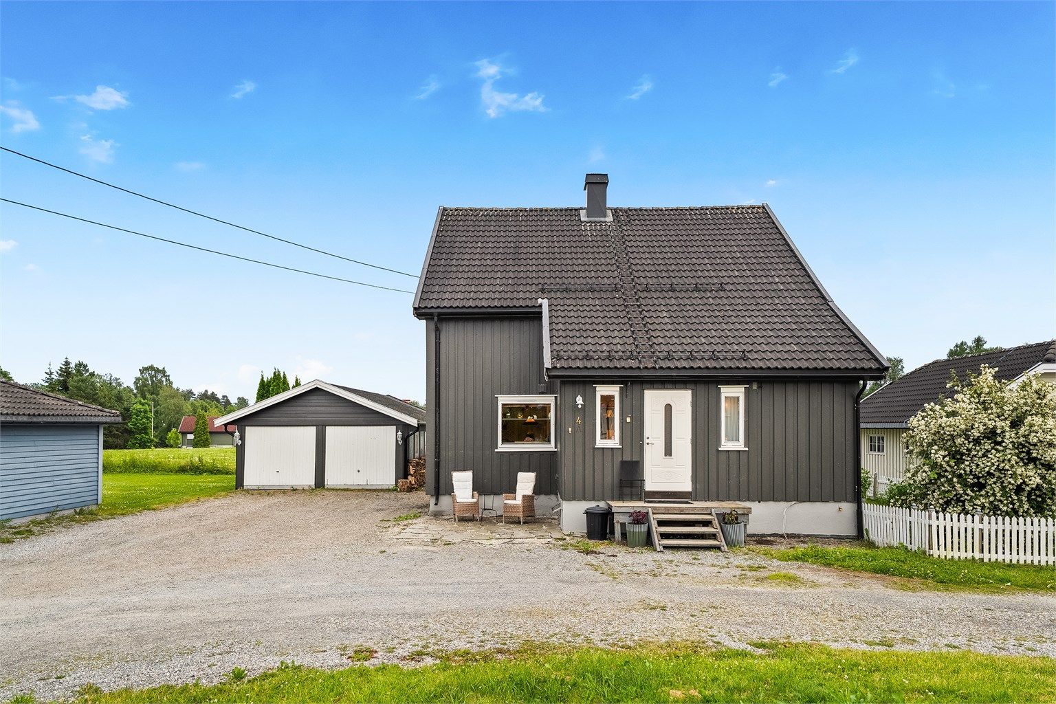 - Eiendommen eier hele innkjørselen for de tre husene. Det blå huset pleier av og til å parkere ved gjerdet nærmest dem selv. Det er ikke gjort noe. parkeringsavtaler med noen andre hus
