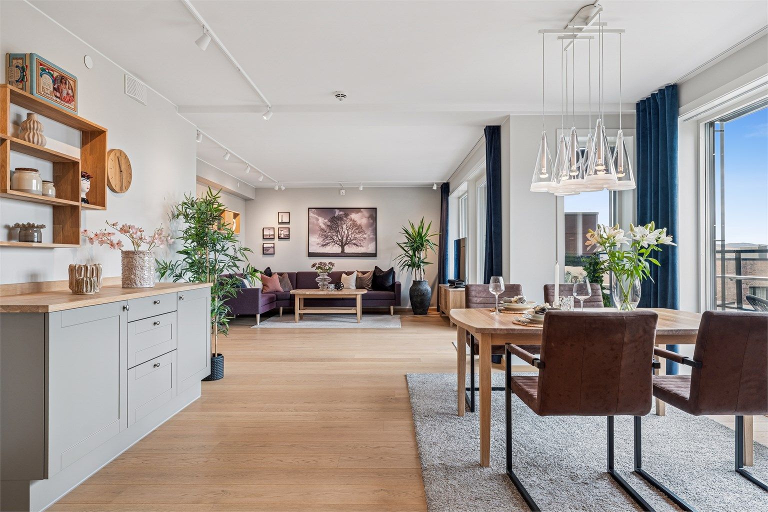 Delikat toppleilighet med 3 soverom, 2 bad, kjøkken og stor stue.