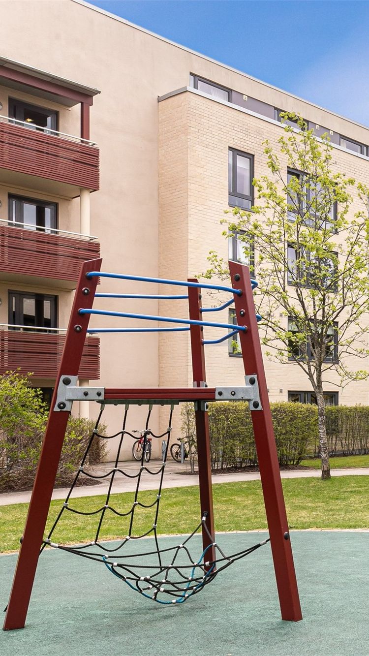 Leiligheten ligger sentralt, men tilbaketrukket i et rolig nabolag med en fin kombinasjon av stillhet og umiddelbar nærhet til servicetilbud.