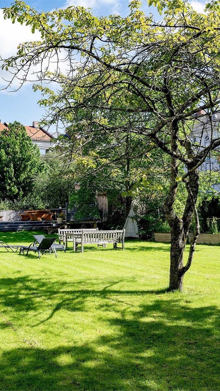 - Avskjermet og herlig bakgård med stor gressplen og flere sittegrupper