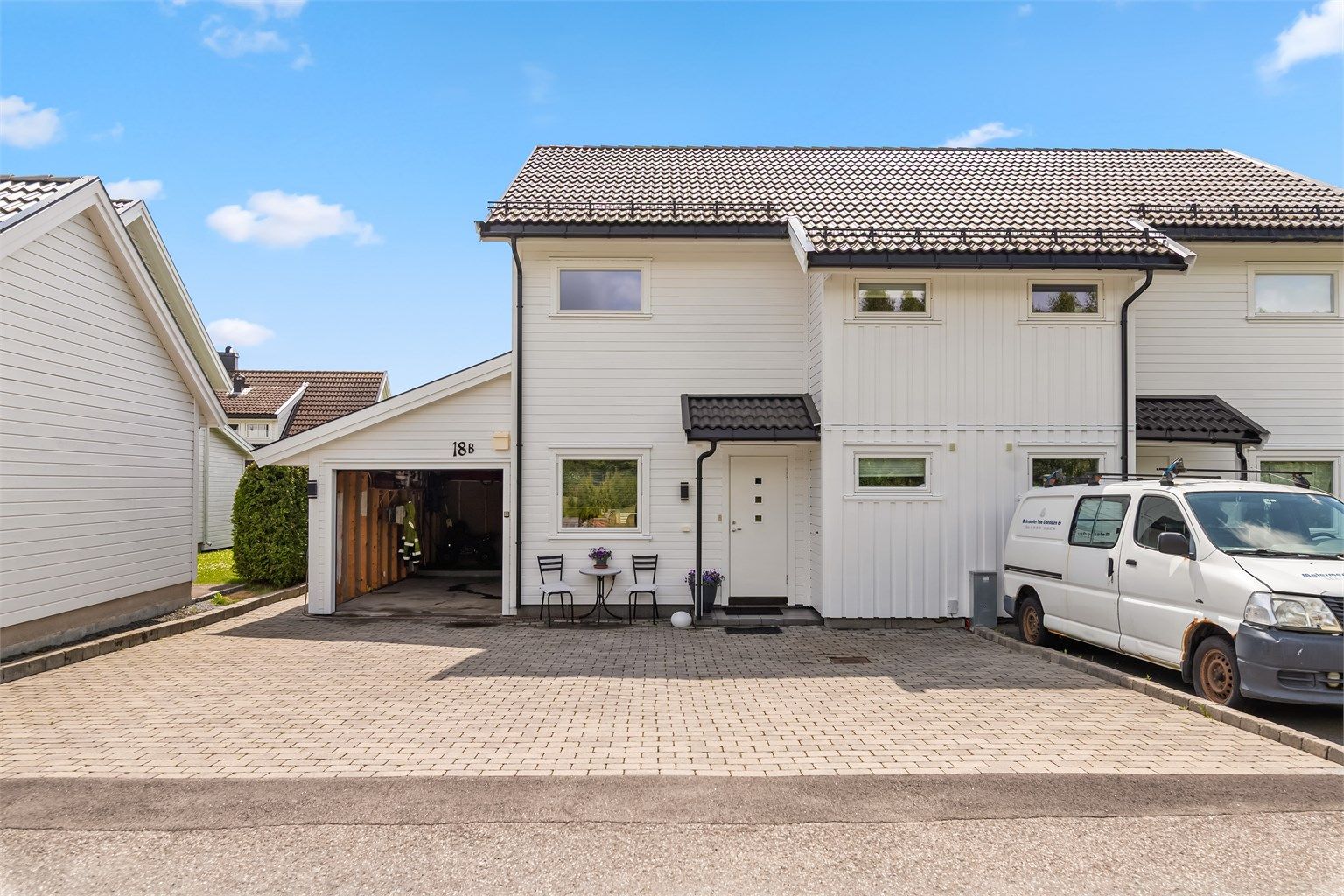 En lys og lekker halvpart av vertikaldelt tomannsbolig med flott og moderne standard. Lys og pen stue i åpen løsning mot kjøkkenet som har rikelig med vindusflater som slipper inn godt med naturlig lys. Stuen har flere møbleringsmuligheter og kjøkkenet er stort med god plass til spisebord mot stuen. Det er direkte utgang til romslig terrasse fra stuen, her er det god plass til flere sittegrupper. Fra terrassen er det også plenområde hvor det er plass til trampoline eller andre hageaktiviteter.