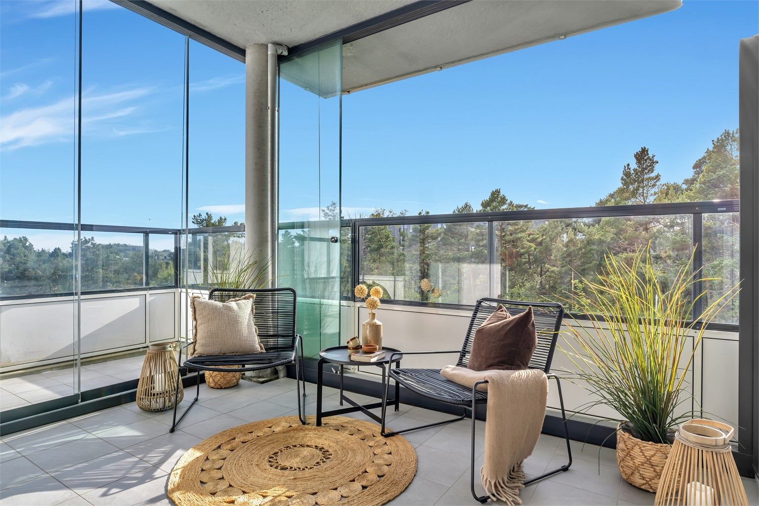 Velkommen til en nyere og moderne eierleilighet med store vindusflater og ekstra påkostede kvaliteter. Leiligheten ligger i byggets 3. etasje og har en god planløsning med gang som inneholder garderobe, vaskerom/bod, 3 soverom, 2 helflisede bad/wc hvorav det ene ligger i tilknytning til hovedsoverommet. Stuen er romslig med mulighet for allsidig innredning, og har delvis åpen kjøkkenløsning med moderne lys innredning fra HTH. Herfra er det utgang til stor, delvis innglasset og usjenert veranda på hele 14 kvm. Noe slitasje på gulv i bruksrom.