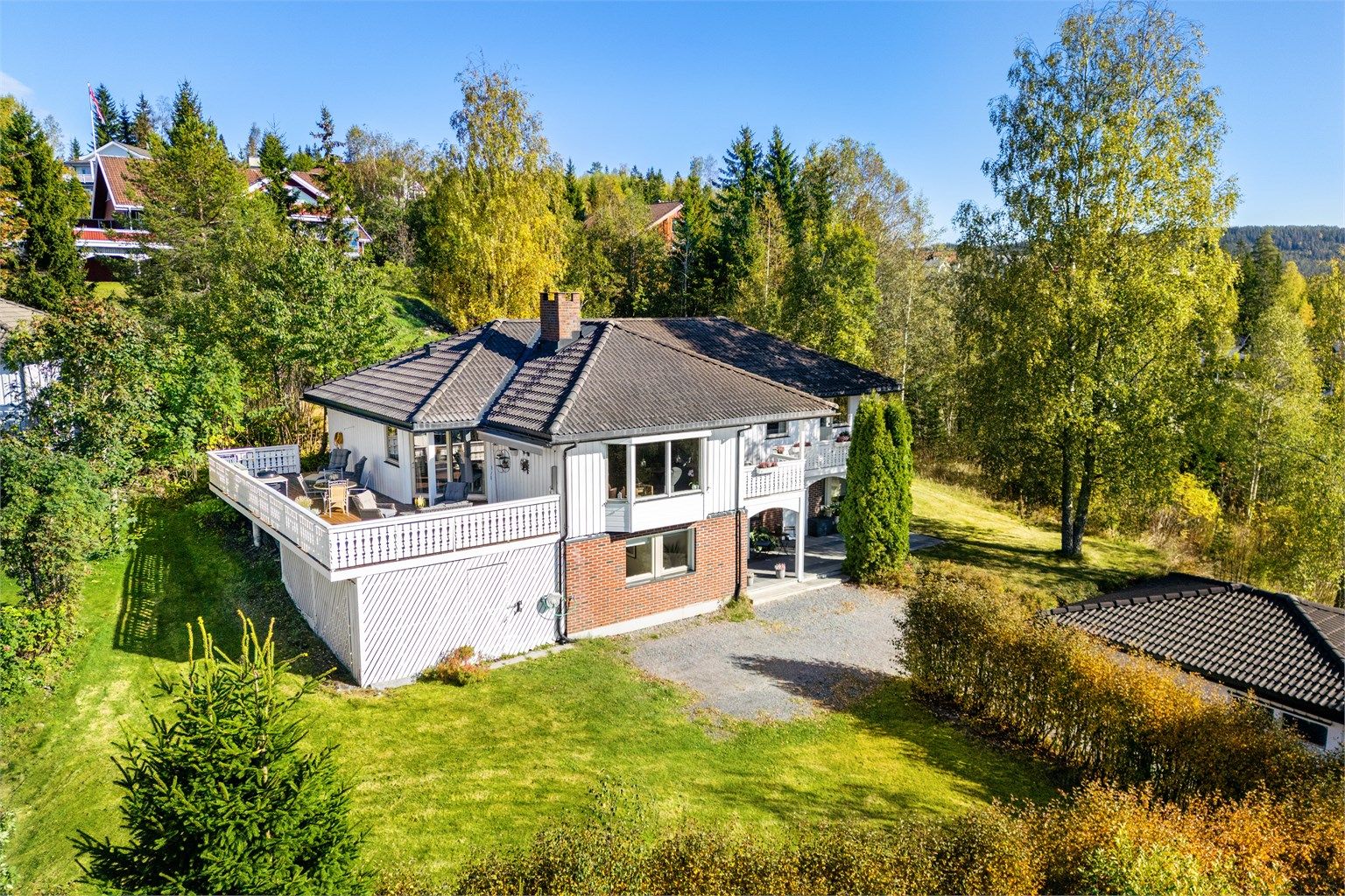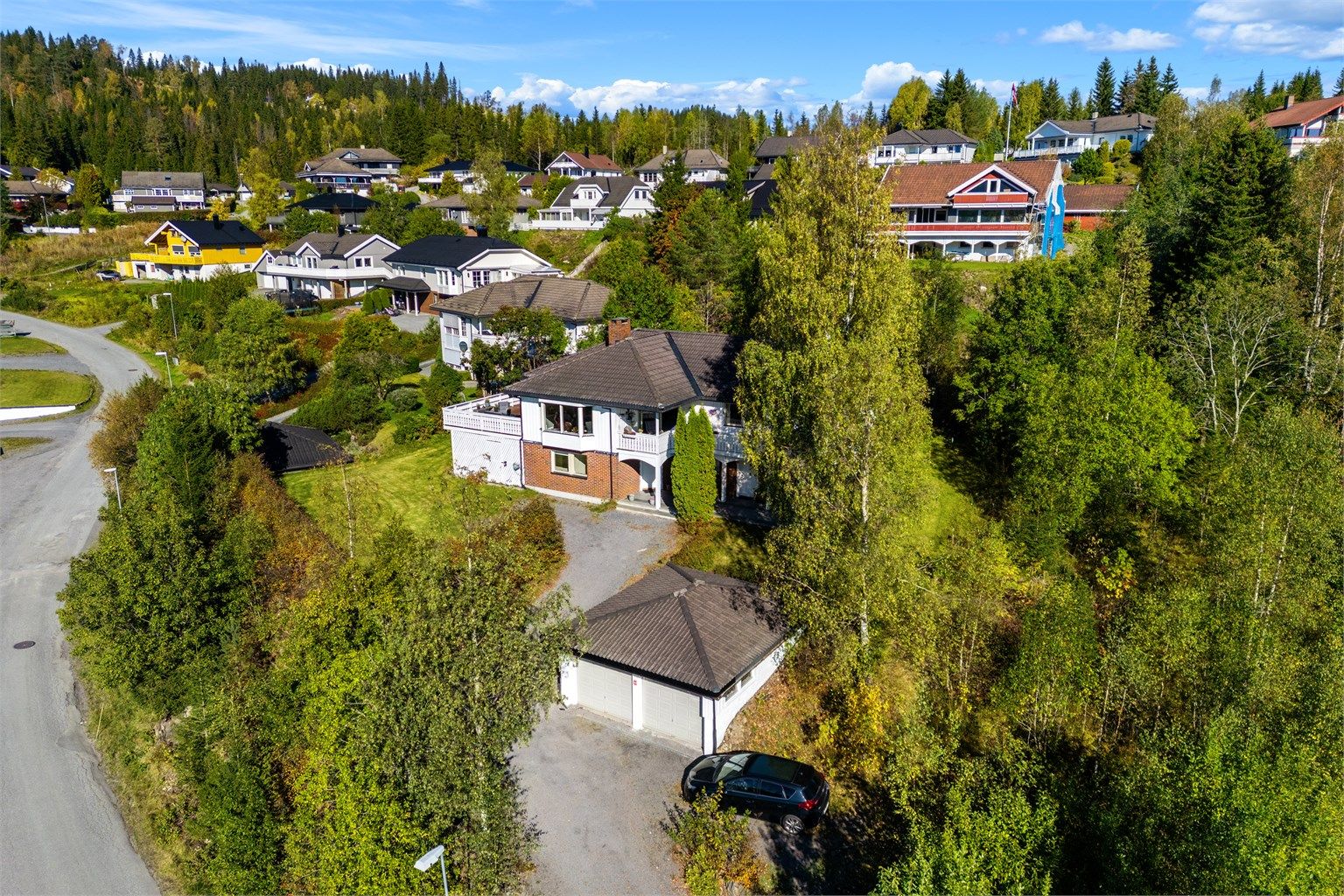 Stor familiebolig i attraktivt strøk. Dobbelgarasje og godkjent utleiedel. Usjenert og tilbaketrukket – med utsikt!