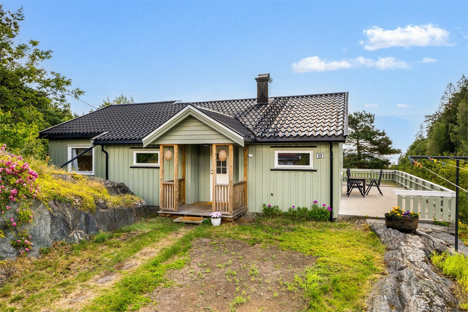 Stor tomt med lite innsyn.