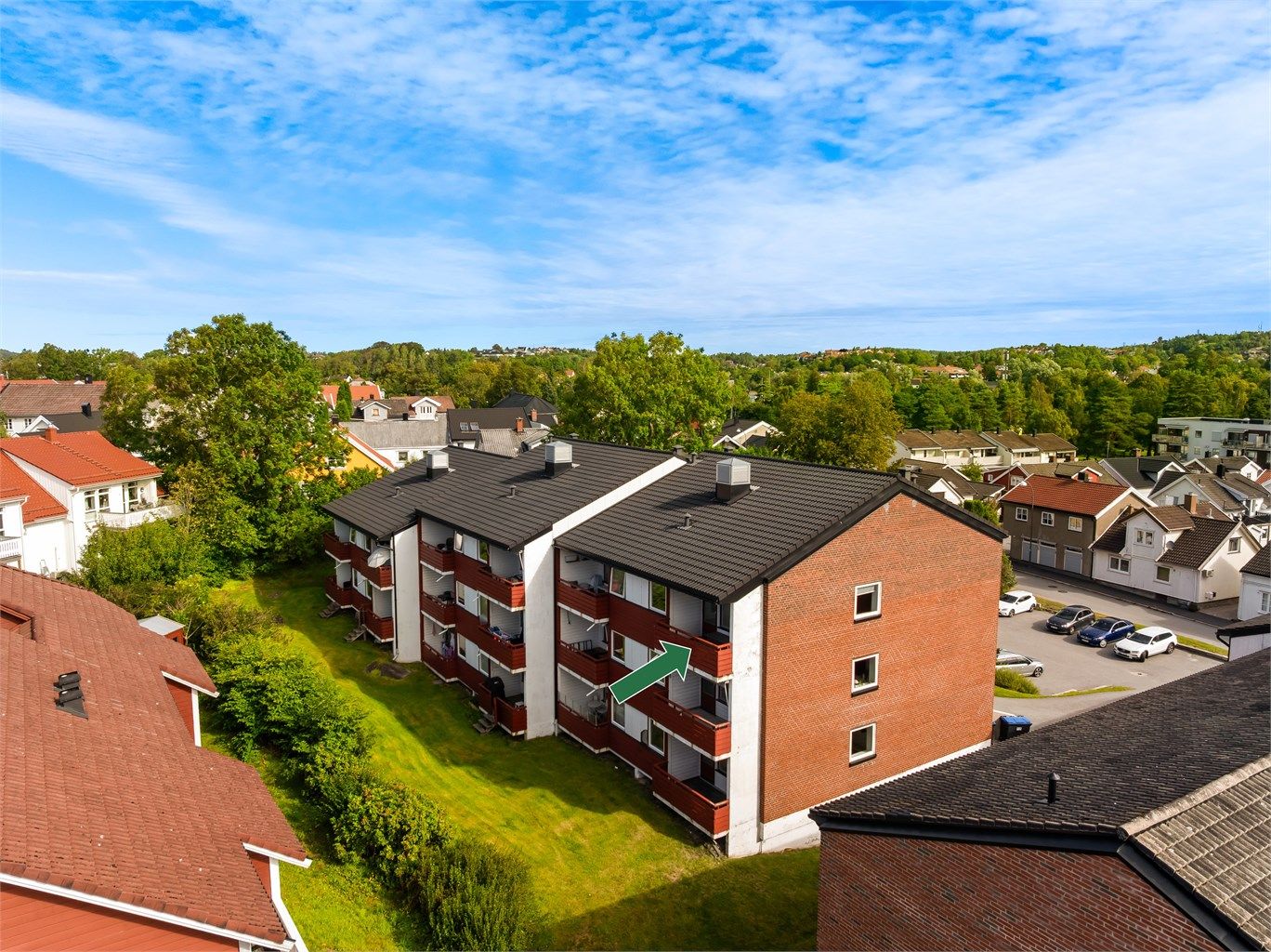Attraktiv 2-roms ende-/toppleilighet renovert i 2017. Vestvendt balkong med utsikt og sol ettermiddag/kveld.