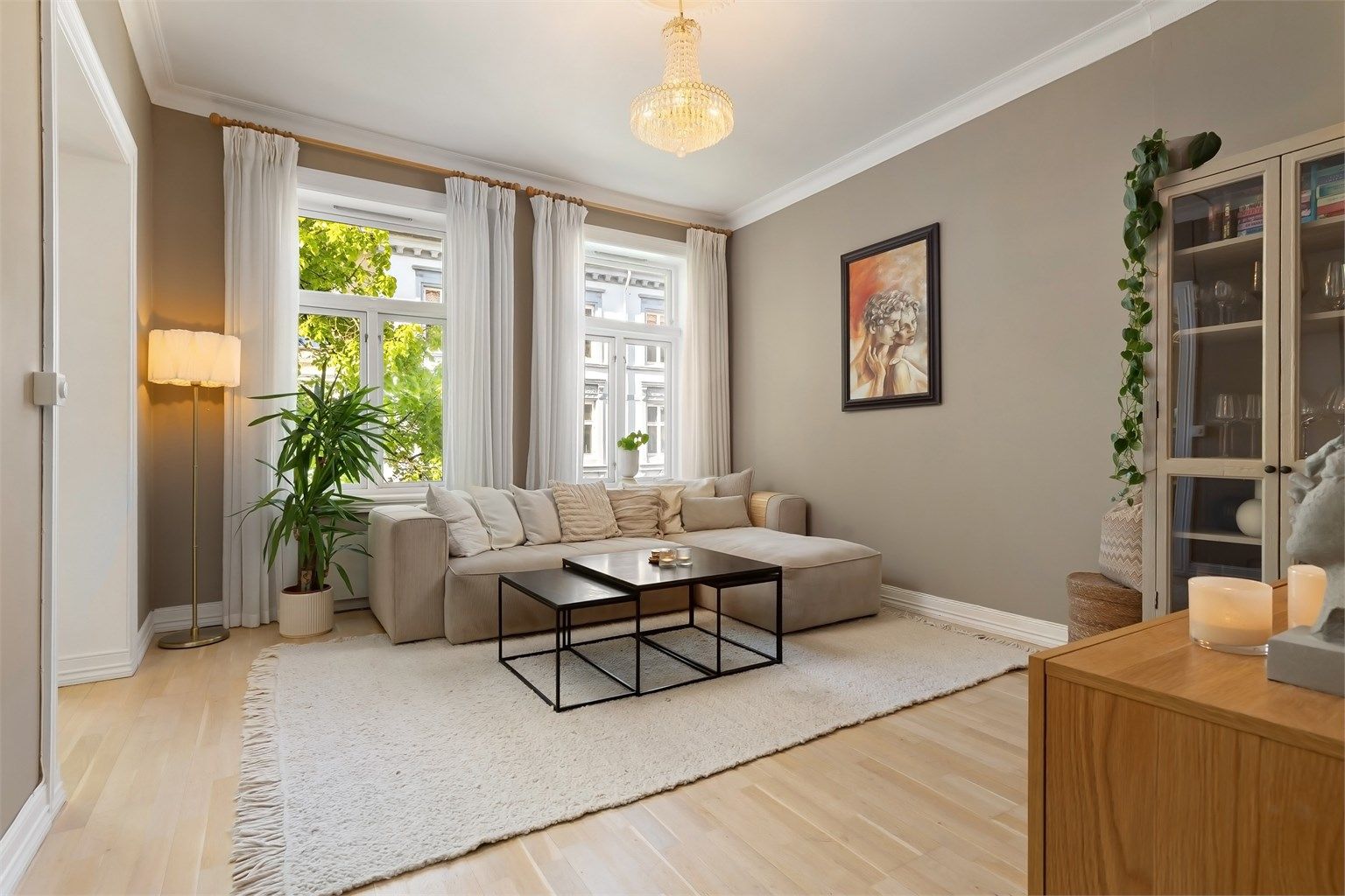 Lekker leilighet med en svært god, gjennomgående planløsning og gjengs god standard. Boligen byr på klassiske detaljer som god takhøyde, profilerte dører, masse naturlig lysinnslipp fra store vindusflater samt rosett og stukkatur! Med beliggenhet høyt oppe i tredje etasje og lite direkte innsyn, oppleves leiligheten som usjenert. Bygården ligger i rolige og ettertraktede omgivelser på beste Grünerløkka!
