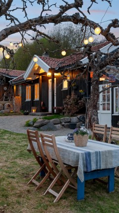 Hovedhuset har en innholdsrik planløsning over to plan med flere oppholdsrom, to bad og fleksible bruksmuligheter.