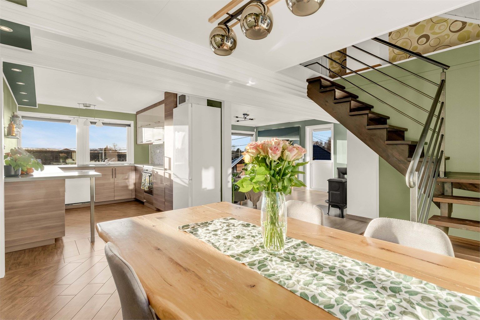 - Det mangler et par trinn i takstigen, samt plattform ved pipe. Montering er bestilt av blikkenslager og vil være i orden innen boligen annonseres.