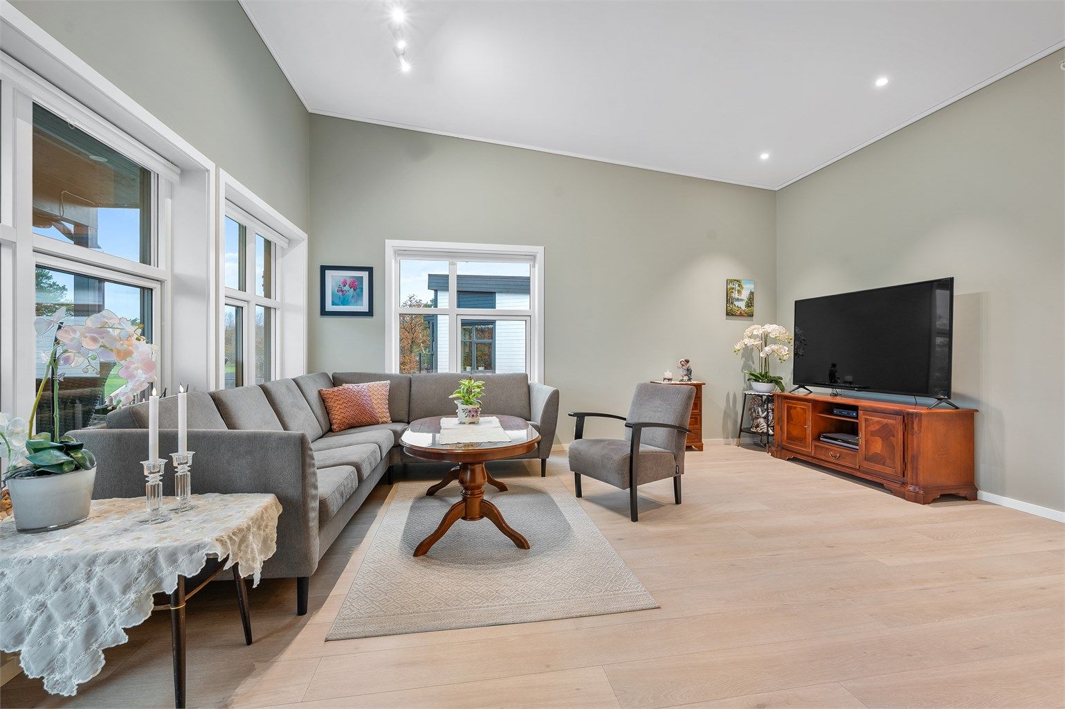Leiligheten oppleves lys og luftig og er betydelig oppgradert med tidsriktig innredninger. Ekstra takhøyde i stuen, velutstyrt påkostet kjøkken med integrerte hvitevarer av høy kvalitet, veranda med overbygg og markiser samt eget gjestetoalett er noe av det leiligheten har å by på. I tillegg vannbåren gulvvarme, carport, heis og el-billader.