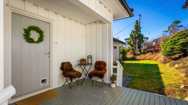 1. etasje 11 kvm: Nordvendt terrasse i tilknytning til inngangspartiet.