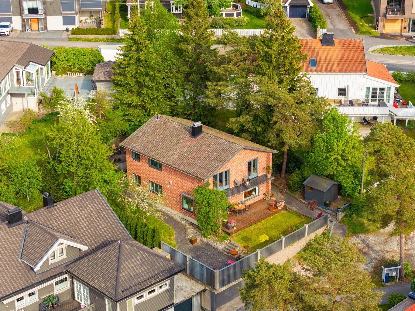 Huset er en stilig teglsteinsvilla, har en tidløs arkitektur med gjennomført og pent tilpasset eksteriør og interiør