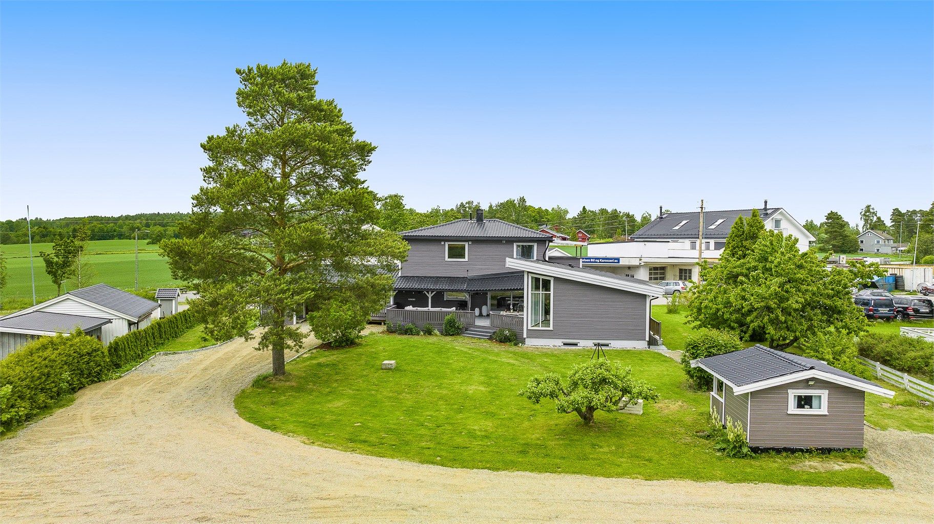 Boligen rommer totalt 9 soverom, 4 stuer og 3 kjøkken, samt 4/5 bad og flere boder fordelt over kjeller, første og andre etasje. Fra stuen er det utgang til en delvis overbygget terrasse på 55 kvm, som leder videre til en solrik og frodig hage med frukttrær og bærbusker – en idyllisk ramme for både lek og avslapning.