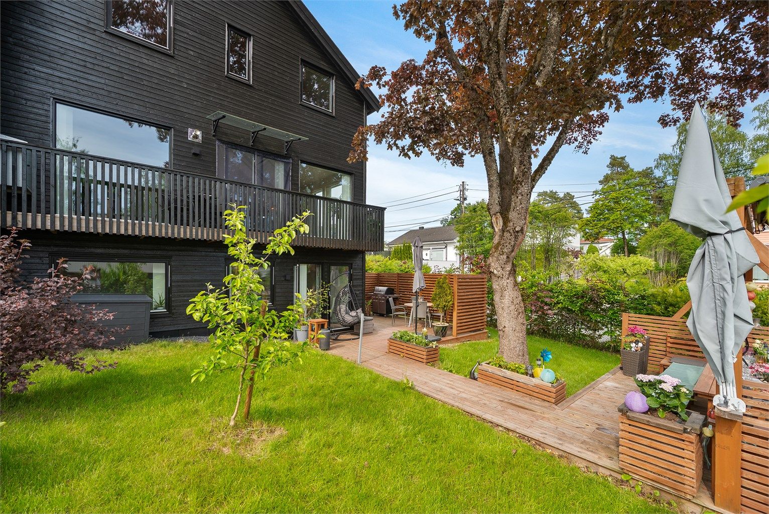 Kittel-Nielsens vei 83 A er en flott vertikaldelt tomannsbolig fra 2022; et arealeffektivt familiehjem med god planløsning over tre etasjer, som burde tilfredsstille de fleste behov. Boligen er gjennomtenkt, godt tilpasset tomten og strøket. Her bor man i en attraktiv villavei, kun 200 meter fra Sæter Torg og med kort gange til skole for alle trinn. Hagen er hyggelig, med fine uteplasser og en stor plen for lek.