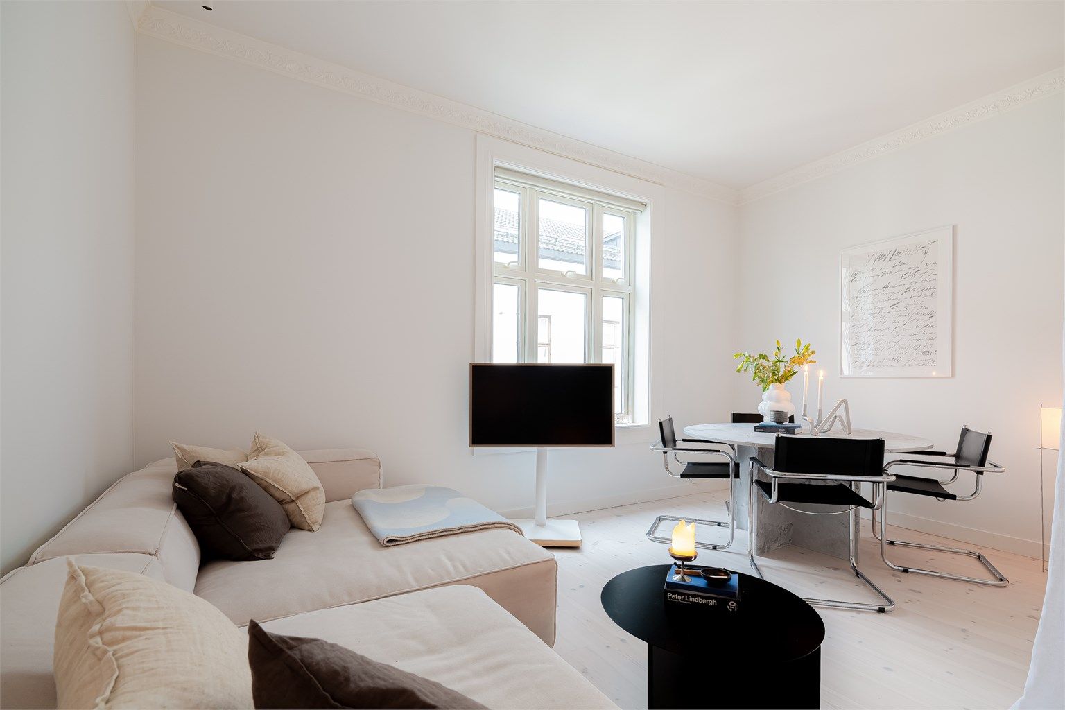 Stilfull og påkostet andelsleilighet med moderne design og generøs takhøyde i klassisk bygård. Perfekt førstegangskjøp!