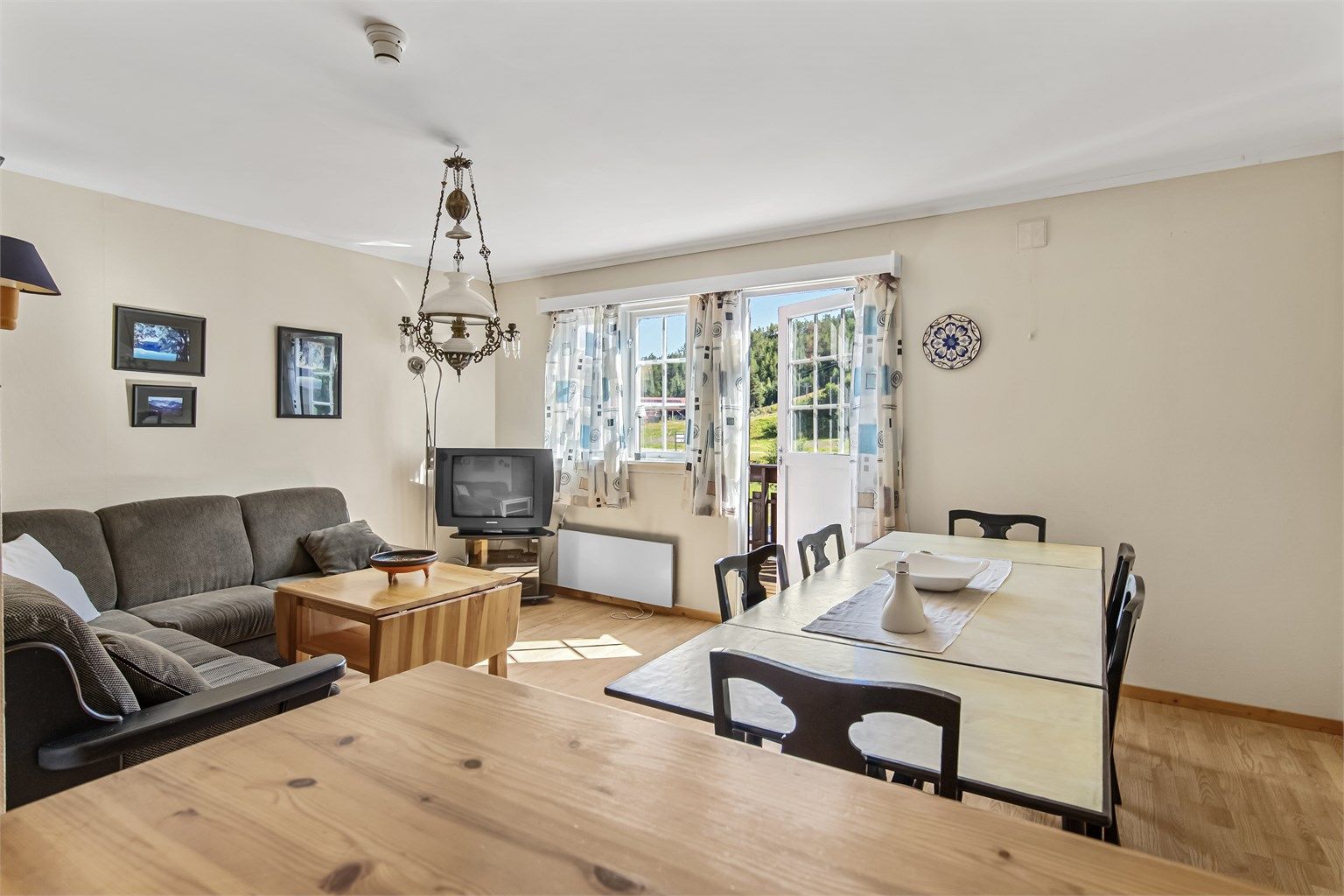 Det er fin plass til både salong og spisestue, slik at man kan samles til hyggelig måltid etterfulgt av spillkveld.