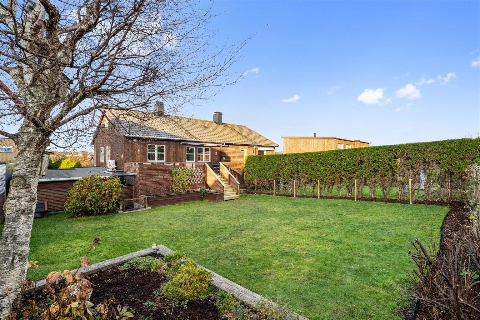 Skjermet og solrik hage med adkomst direkte fra hovedetasjen