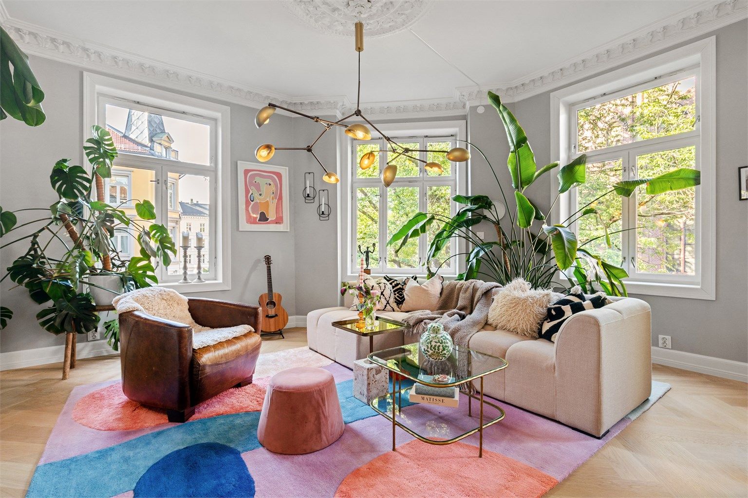 Nydelig hjørneleilighet med svært gode lysforhold, store vindusflater, stukkatur og rosett. Tilbaketrukket beliggenhet, så her bor du svært sentralt og rolig til rett ved Paulus' kirke.