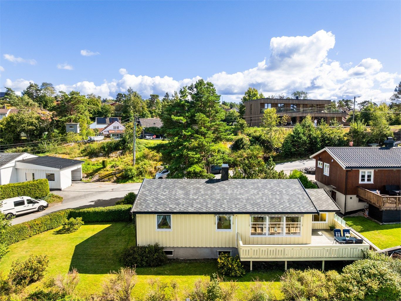 Lettstelt, alt på en flate, gode lys og solforhold, rolig boligstrøk, sentralt, kort avstand til skoler og rekreasjonsområder i skog og mark.