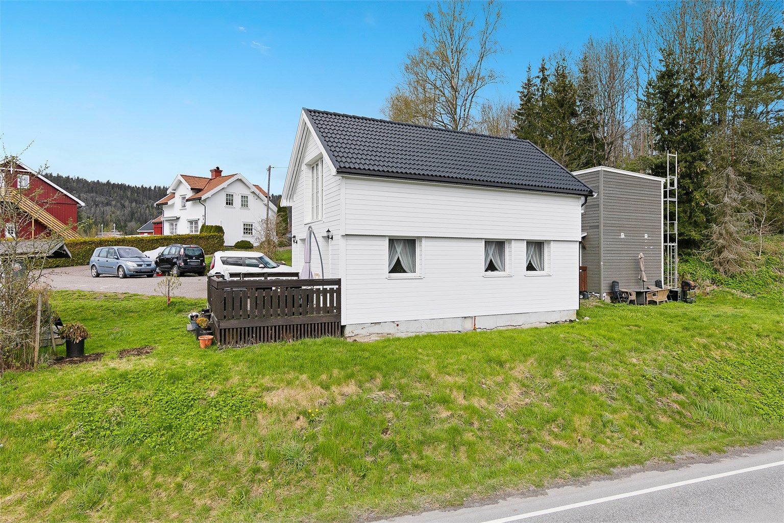 Eneboligen fremstår som pent oppusset og inneholder entre, stue, spisestue, kjøkken og bad i første etasje samt gang og 2 soverom i 2. etg.