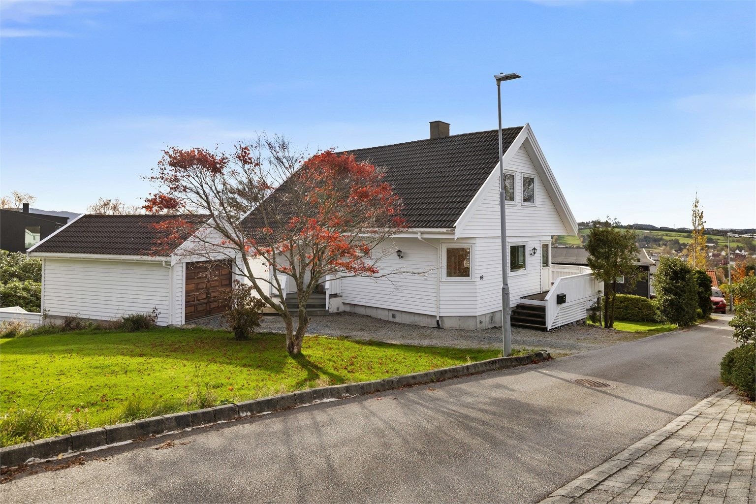 Stor og fin enebolig med godkjent utleiedel. |Meget bra beliggenhet. |Flott utsikt. |Garasje og gjesteparkering