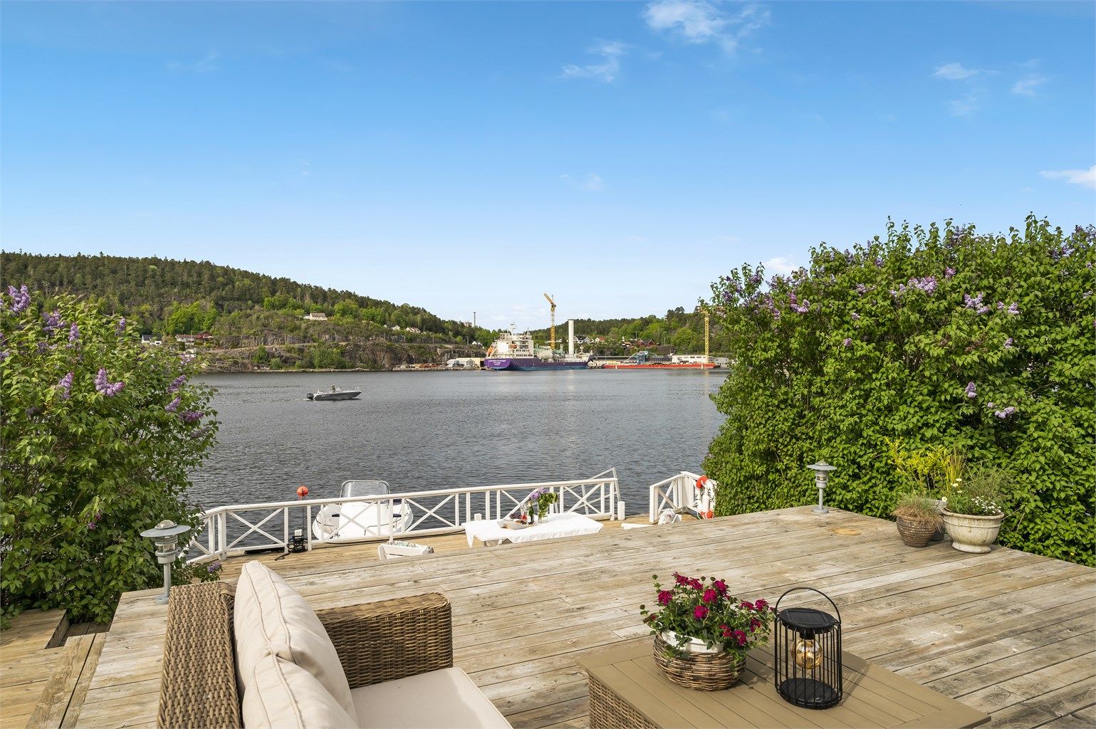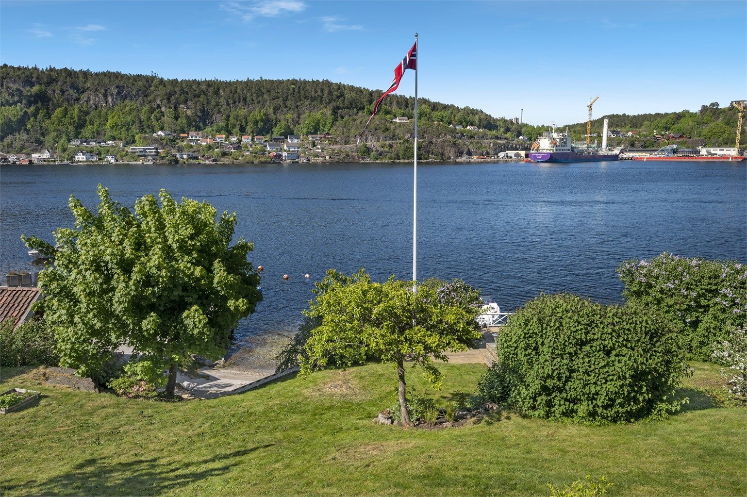 Boligen ligger helt nede ved sjøen i Krabberødstrand med egen strandlinje bestående av brygge og sandstrand. Huset er opprinnelig fra 1800 tallet og ble omfattende restaurert for ca 25 år siden. Da ble det også påbygget med det karakteristiske tilbygget i sjøbodstil, men også i senere tid har det vært gjort påkostninger og nå stråler det i all sin prakt som aldri før. Bebyggelsen er en tidsmarkør tuftet på en fordums tid. Hagen og uteområdene gir også assosiasjoner tilbake i tid og er beplantet med trær, syrinbusker og gressplen som strekker seg ned mot sjøen. På vei dit er det også plass til en liten kjøkkenhage.