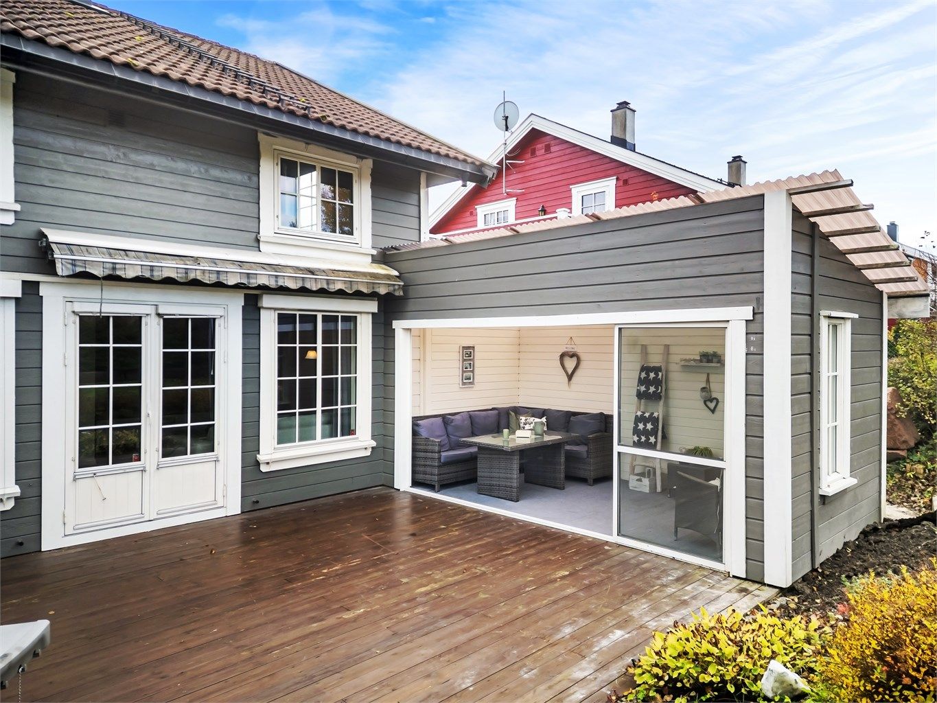 Lys og innbydende halvpart av vertikaldelt tomannsbolig. Flere fine uteplasser. Carport. Svært barnevennlig i blindvei.