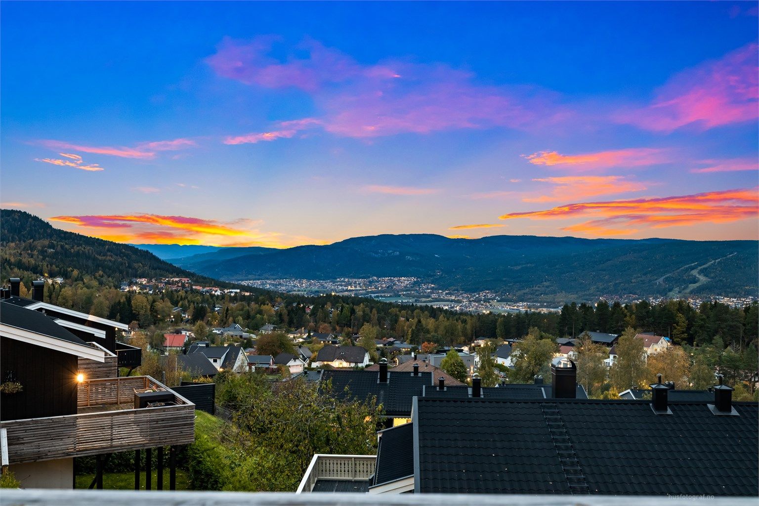 Nordvestvendt balkong på ca. 10 kvm med flott utsikt fra høyden