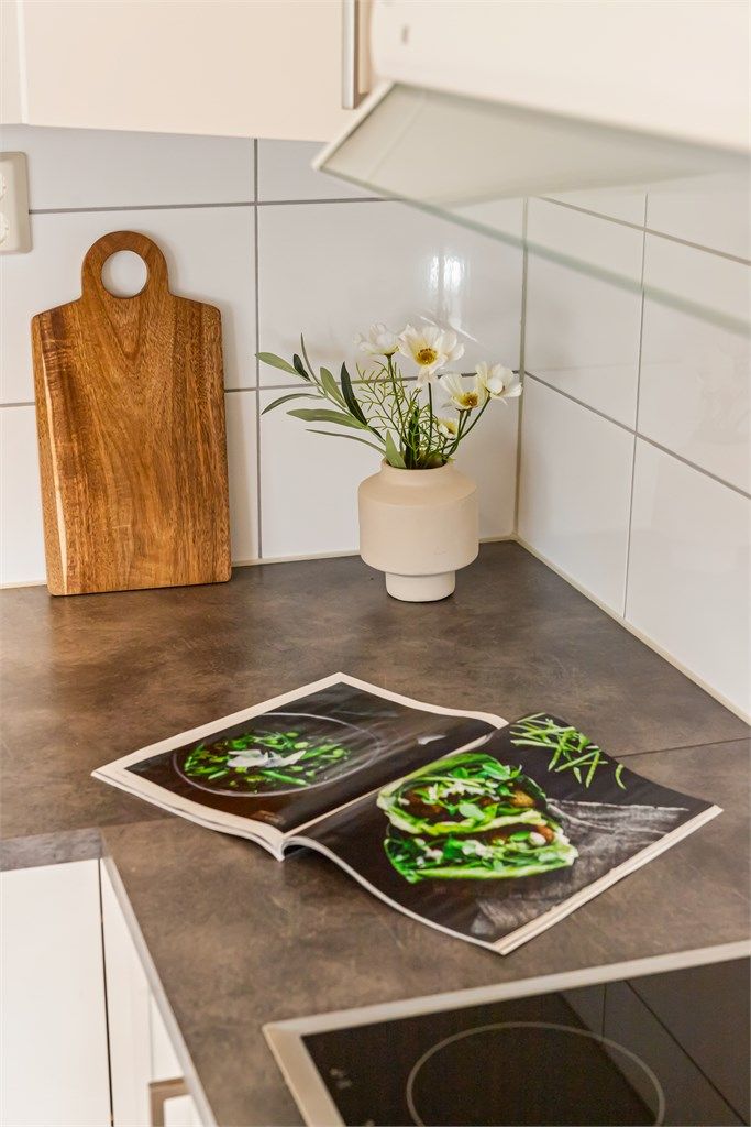 * Leiligheten byr på en gjennomtenkt og innholdsrik planløsning med to romslige soverom, delikat, flislagt bad, lys og luftig stue med delvis åpen kjøkkenløsning