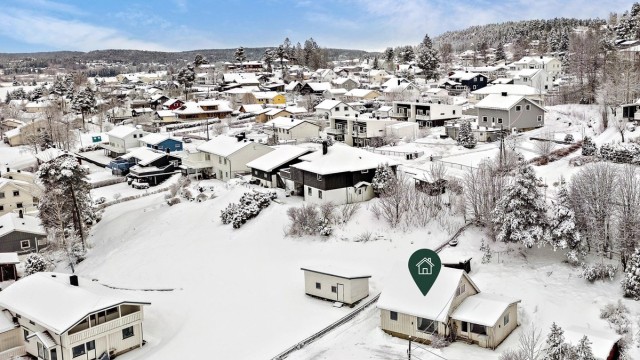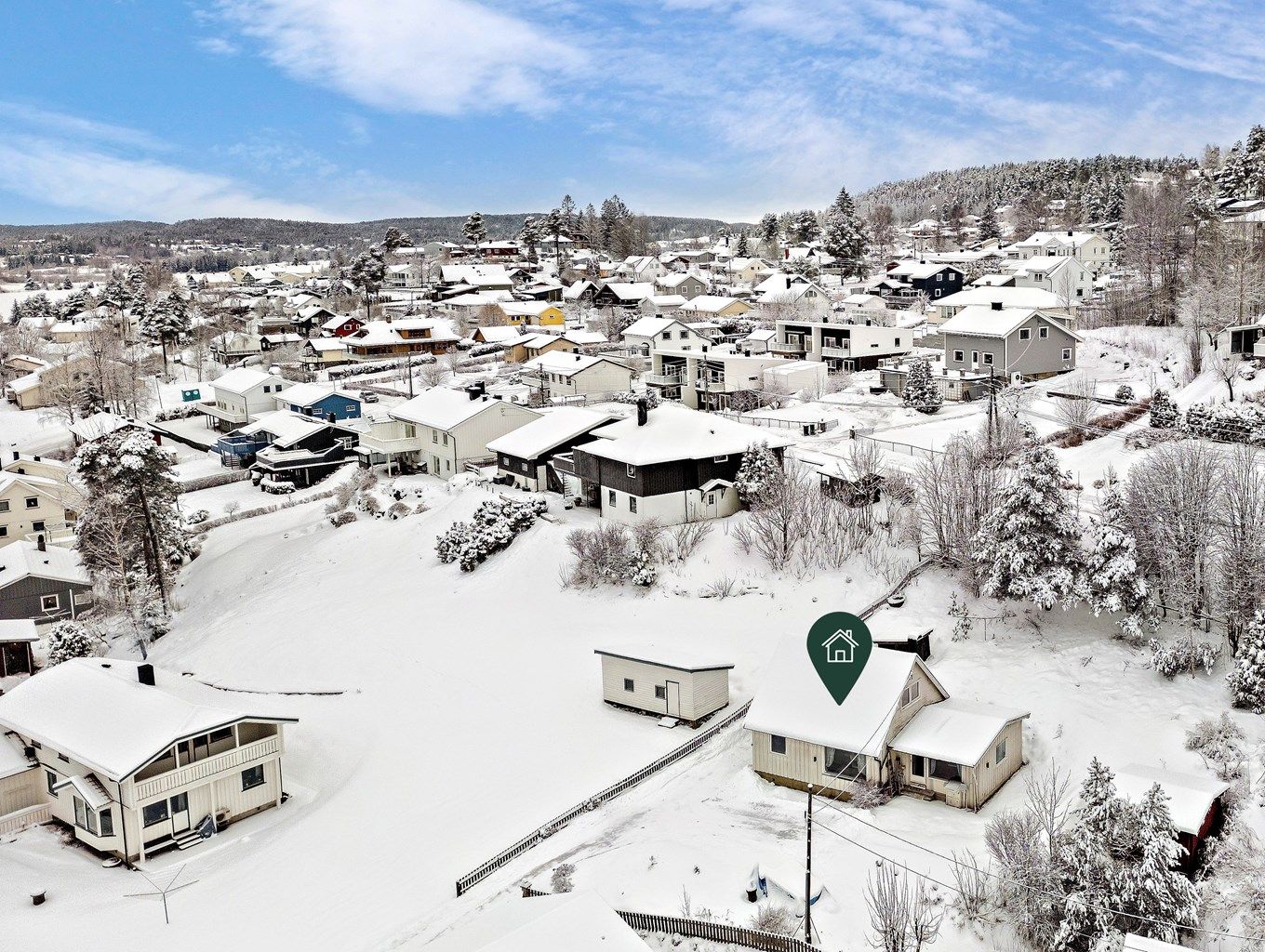 Boligen ligger relativt høyt i terrenget, på solrik tomt med flotte utsiktsforhold.