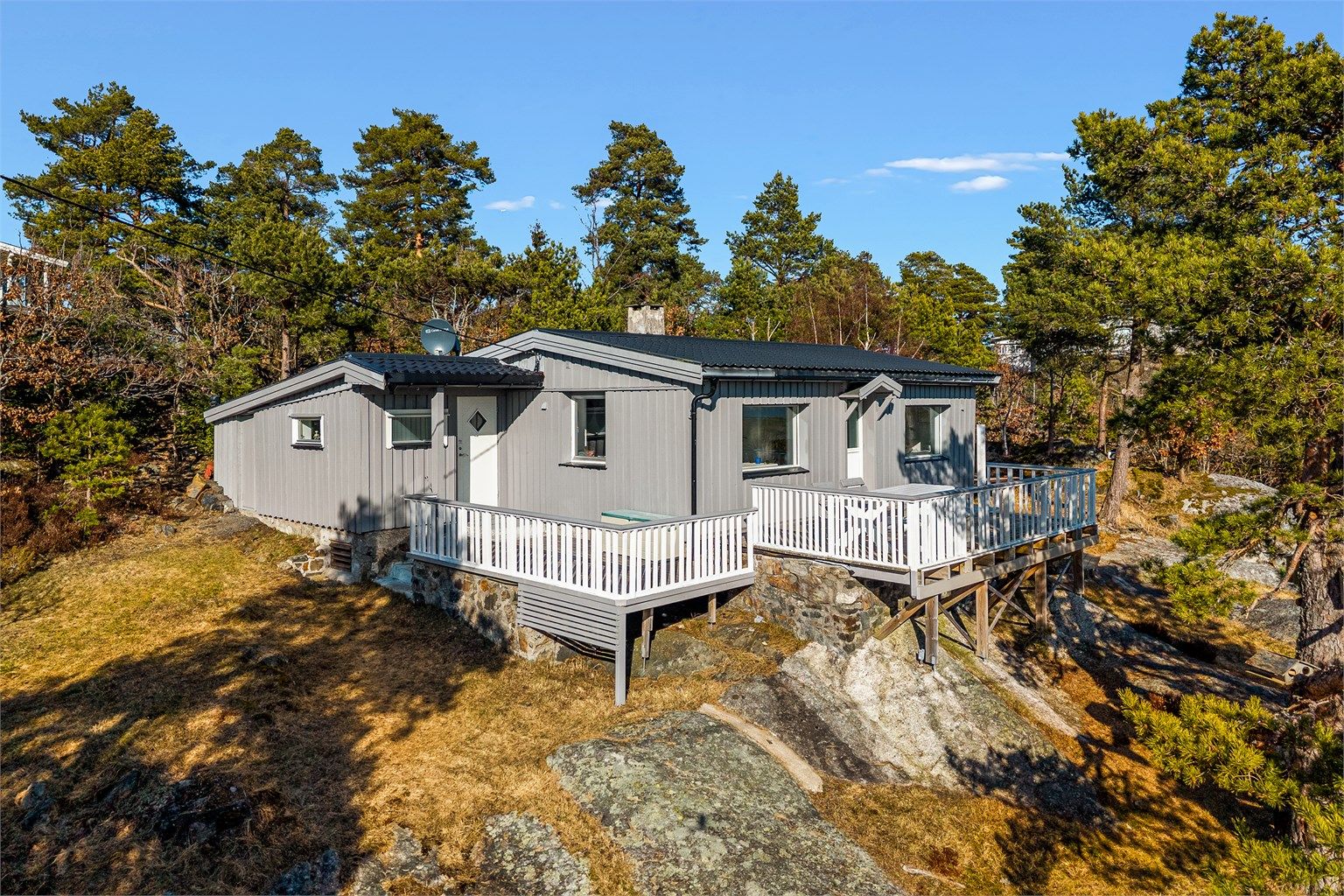 Sommerhuset på Trosby i Bamble har med sin fantastiske beliggenhet de beste forutsetninger for å nyte omgivelsene ekstra godt. Med utsikt utover sjøen, stor terrasse, carport, bilvei frem, båtplass og sjøbod, kan sommeren bare komme.