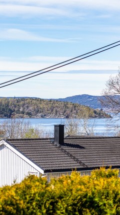 Velholdt, frittstående enebolig med sjøutsikt. Alt på én flate. Nytt bad i '16. Sol hele dagen. 4 biloppstillingsplasser