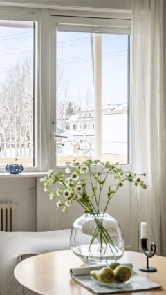 Tiltalende og moderne stue med en lun og luftig romfølelse. Det første som møter deg er store vindusflater og balkongdør som gir en god atmosfære. Her er det god plass til sofa med tilhørende salongbord og tv-seksjon, for ikke å glemme god plass til en romslig spisestue. Rommet er romslig og har en veldimensjonert utforming hvor man med enkelthet kan innrede etter eget ønske og personlige stil. I og med at leiligheten ligger i byggets tredje etasje er det lite direkte innsyn til leiligheten. Her ferdes du temmelig fritt både i stuen, balkong og på soverom. Fra stuen er det direkte utgang til en flott balkong. Veggflatene er malt i en lun blåfarge som gir en god romfølelse.