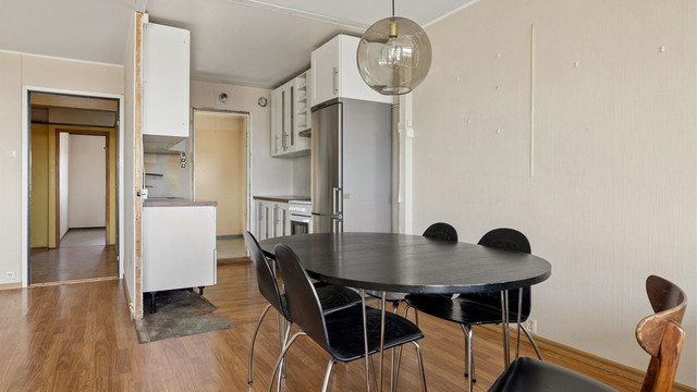 Fra øverste etasje i blokken på Tante Ulrikkes vei strekker utsikten seg over åsene og ut mot Oslofjorden — en horisont som få leiligheter i dette prisleiet kan matche. Leiligheten er en 4-roms med tre soverom, eget vaskerom og en balkong på nær 12 kvadratmeter med adkomst fra stuen. Vinduene ble skiftet i regi av borettslaget, og ny heis ble installert i 2026. Det er gjort rørfornying i regi av borettslaget. Selve leiligheten er fra byggeåret og bærer preg av det — overflater, bad, vaskerom og kjøkken har et oppgraderingsbehov. Den som kjøper dette, kjøper først og fremst beliggenhet, planløsning og utsikt — og tar resten derfra.