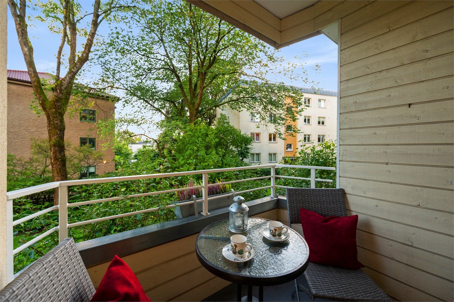 - Sørvestvendt balkong . Vender ut mot pene grøntområder