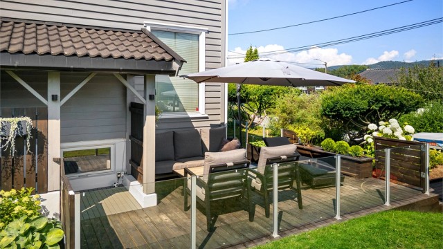 Innbydende og pen enebolig med 1-roms hybel i kjeller. Stor og frodig hage med skjermet uteplasser. Garasje.