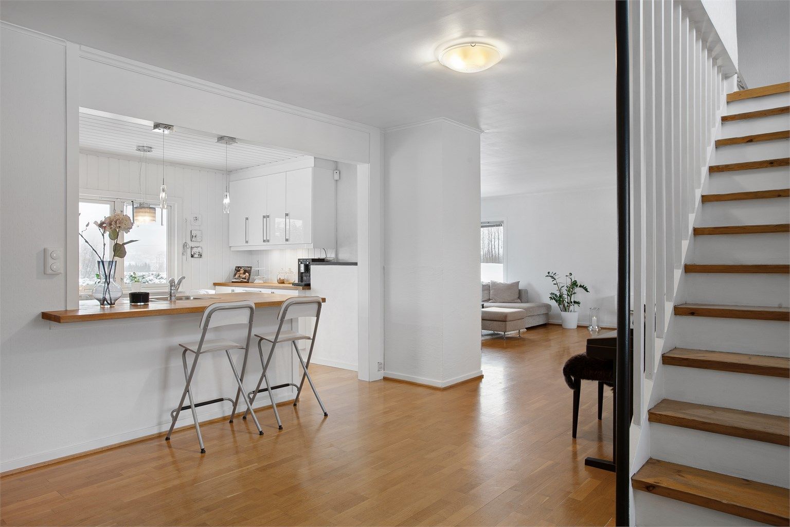- Åpen kjøkken-/stue med peisovn fra 2014 og varmepumpe fra 2022 i hybel