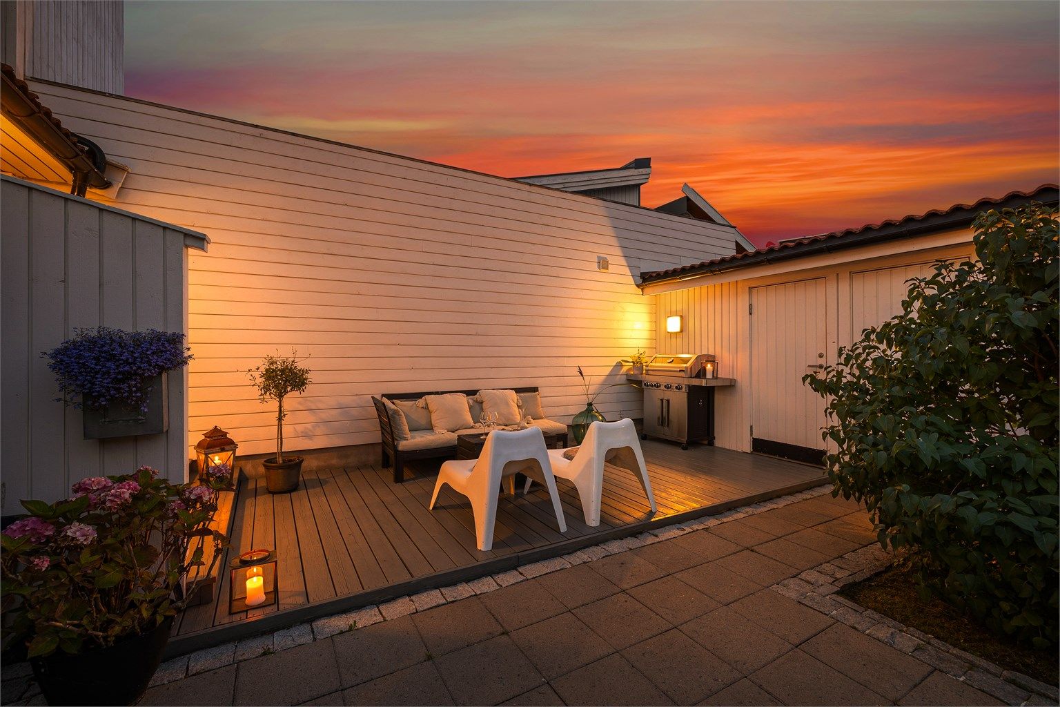 Egen platting i felles bakgård, solfylt det meste av dagen sommerstid